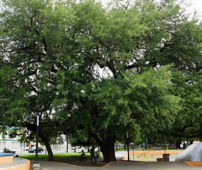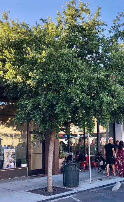 • Árbol de 12-15 metros de altura. De crecimiento con velocidad moderada y follaje perenne, manteniéndose verde todo el año. Tiende a crecer más verticalmente, pero sigue creando un efecto de “calles túnel”. Muy noble en cuanto a resistencia a sequías, altas temperaturas, exceso de lluvia y plagas. Si no sabes qué encino elegir de los presentados en esta lista, te aconsejo que plantes un encino roble, por su gran altura, sus raíces profundas, su follaje perenne (aunque sí renueva y tira algunas hojas en invierno) y su porte: satisfacción garantizada. Requiere ser plantado en banquetas con arriates que tengan mínimo 2 metros de ancho.